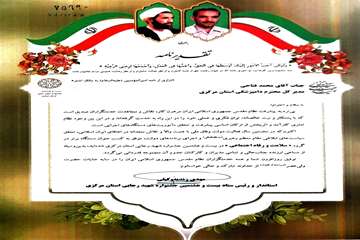 کسب رتبه برتر توسط اداره کل دامپزشکی استان مرکزی در جشنواره شهید رجایی